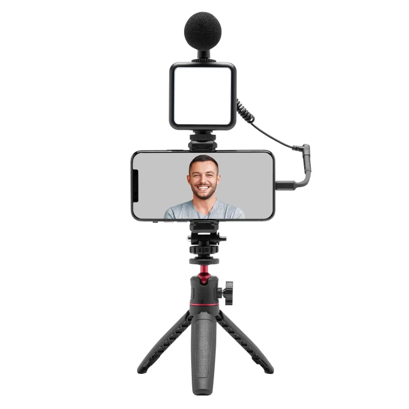 For nybegynnere som vil komme i gang med vlogging eller innholdsproduksjon uten å kjøpe alt separat, er dette en svært praktisk løsning. Mikrofonen er en enkel kondensatormikrofon som gir merkbart bedre lyd enn telefonens innebygde mikrofon, og stativet er stabilt nok for bordbruk.