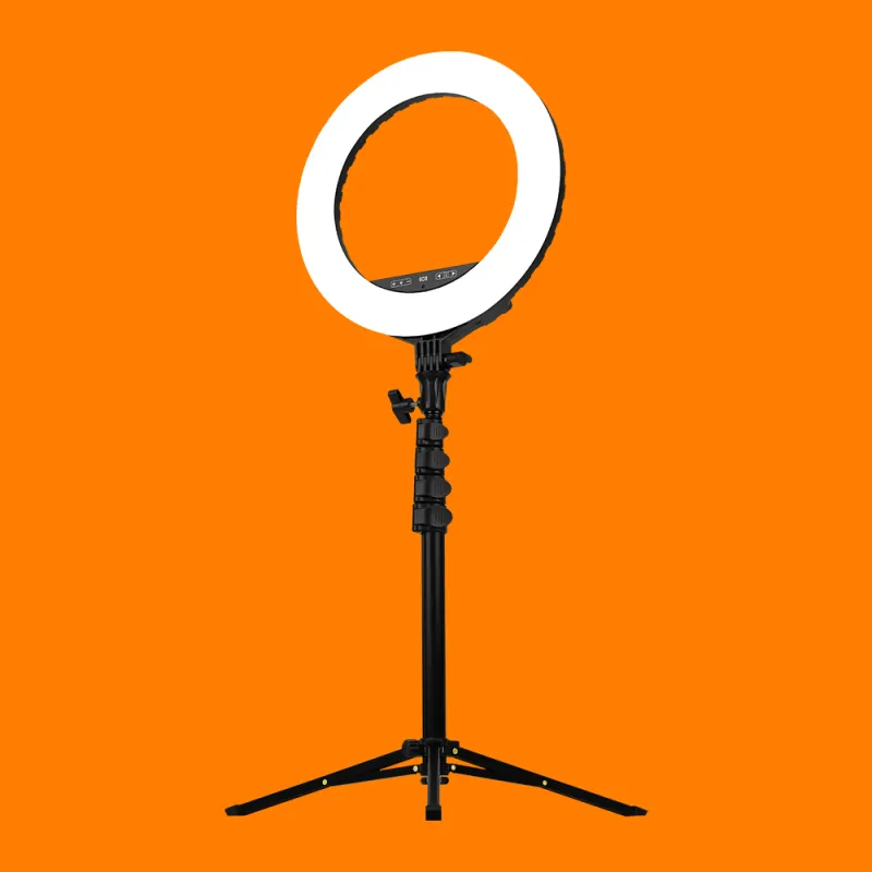 Størrelsen avhenger av bruksområdet. For selfies og videosamtaler holder 6 til 10 tommer. For streaming anbefaler vi minimum 12 tommer. For profesjonell foto og video er 14 til 18 tommer ideelt. Større ringer gir jevnere og mer flatterende lys, men krever mer plass.